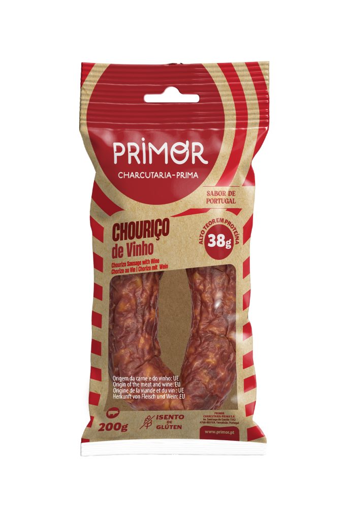 Produtos Embalagem com 200g 38 g proteína /200g de produto Alegações: Fonte de proteína; Baixo teor de açúcares; Isento de glúten; Ingredientes: Carne e gordura de suino (origem:UE), água, vinho (3%) (origem:UE), sal, antioxidantes (lactato de sódio, citratos de sódio e eritorbato de sódio), dextrose, proteína de soja, fibra vegetal, sangue de suíno, alho, emulsionante […]