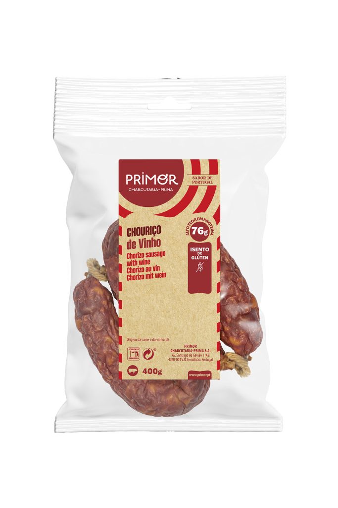 Produtos Embalagem com 400g 76 g proteína /400g de produto Alegações: Fonte de proteína; Baixo teor de açúcares; Isento de glúten; Ingredientes: Carne e gordura de suino (origem:UE), água, vinho (3%) (origem:UE), sal, antioxidantes (lactato de sódio, citratos de sódio e eritorbato de sódio), dextrose, proteína de soja, fibra vegetal, sangue de suíno, alho, emulsionante […]