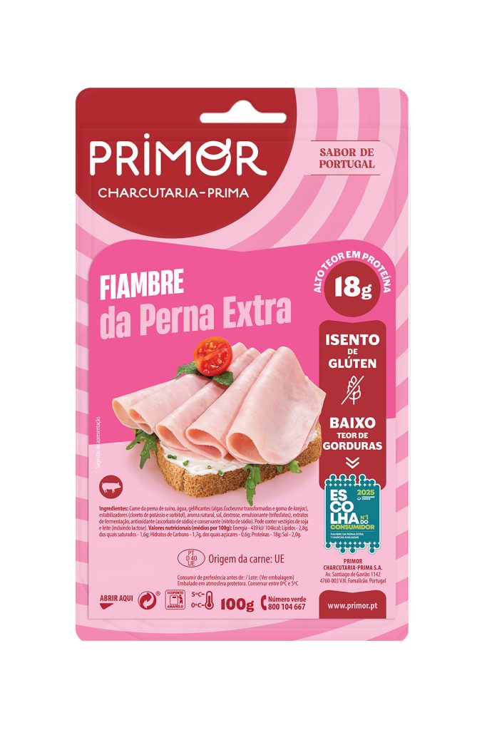 Produtos Peça com aproximadamente 3,65Kg Ingredientes: Carne da perna de suíno (73%) (origem: UE), água, antioxidantes (lactato de sódio, ascorbato de sódio, citratos de sódio), açúcar, dextrose, sal, emulsionante (trifosfatos), aromas, aroma de fumo, gelificante (algas Eucheuma transformadas), estabilizador (cloreto de potássio), proteínas de suíno, hemoglobina e conservante (nitrito de sódio). Declaração nutricional (médias por […]