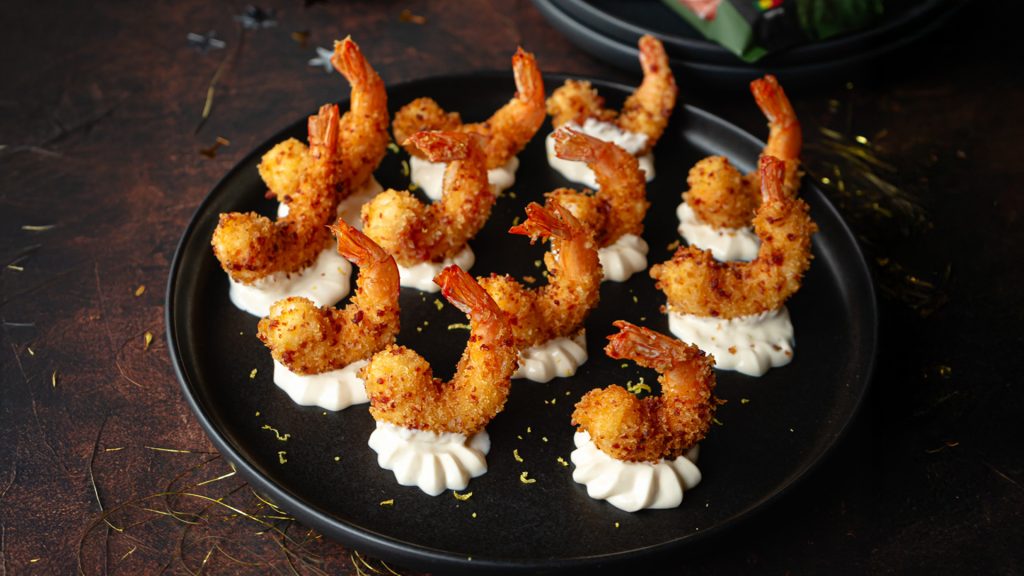 Camarões Panados com Linguiça Picante