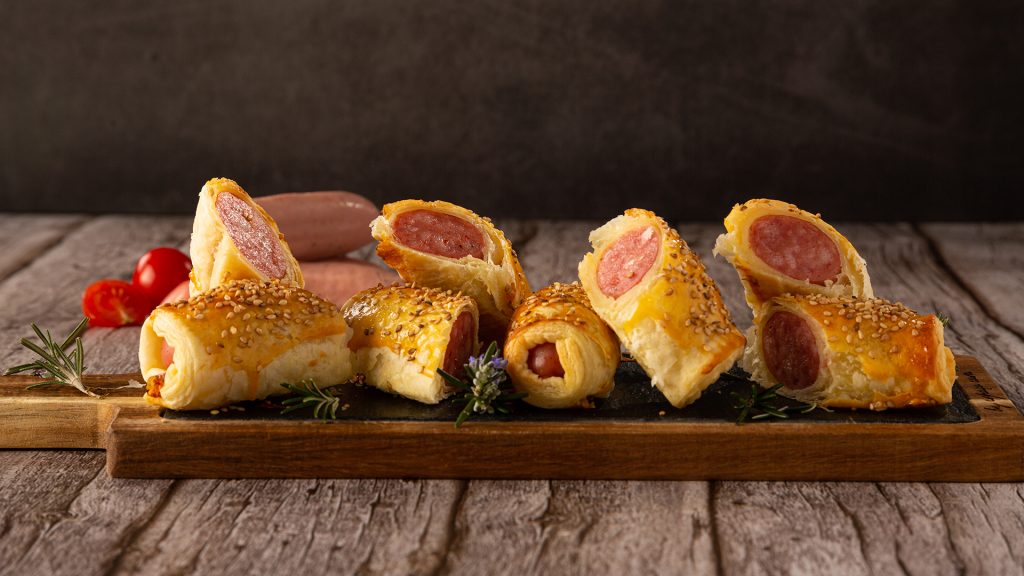 Ingredientes: 1 Massa folhada retangular12 Salsichas de Churrasco 2 colheres de sopa de mostarda2 colheres de sopa de sementes1 ovo batido para pincelar Serve: 4 a 6 pessoas Grau de dificuldade: Fácil Tempo médio total: 40 minutos Bom Apetite! Passo 1: Desenrolar a massa folhada no sentido do comprimento. Barrar toda a superfície com a mostarda. […]